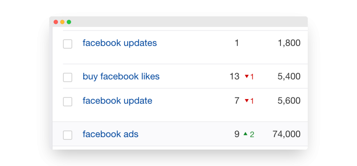 If you notice a slow decline in traffic, look first at the competition. We recommend tracking your target keywords in a tool like Ahrefs or Moz. This is the easiest way to spot changes on search engine results pages and keep an eye on your competition.