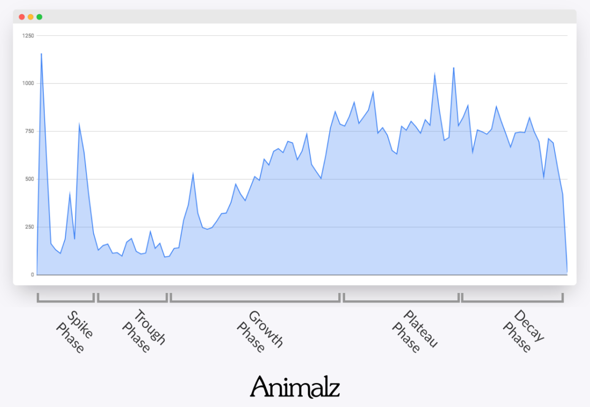 In The Science Behind 100,000-View Blog Posts, we outlined the five phases of growth. To refresh your memory, here’s what that looks like: