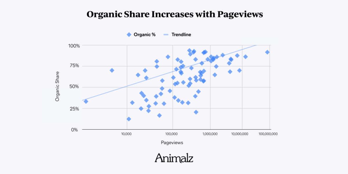 3 We have long believed that organic traffic carries with it a host of indirect benefits. Our research seems to back this up, showing that blogs with a high percentage of traffic from organic sources are more likely to have more traffic overall.