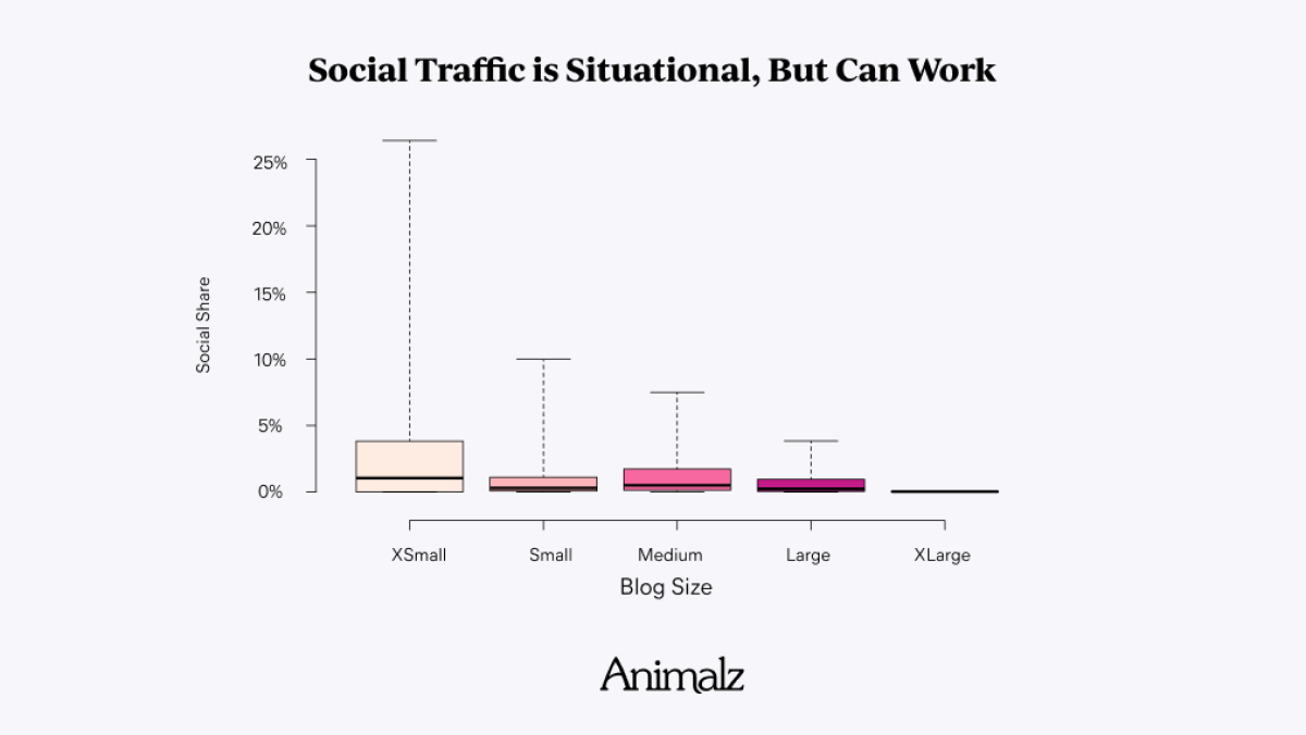 “For some Extra-small blogs, over a quarter of all traffic comes through a social channel.”