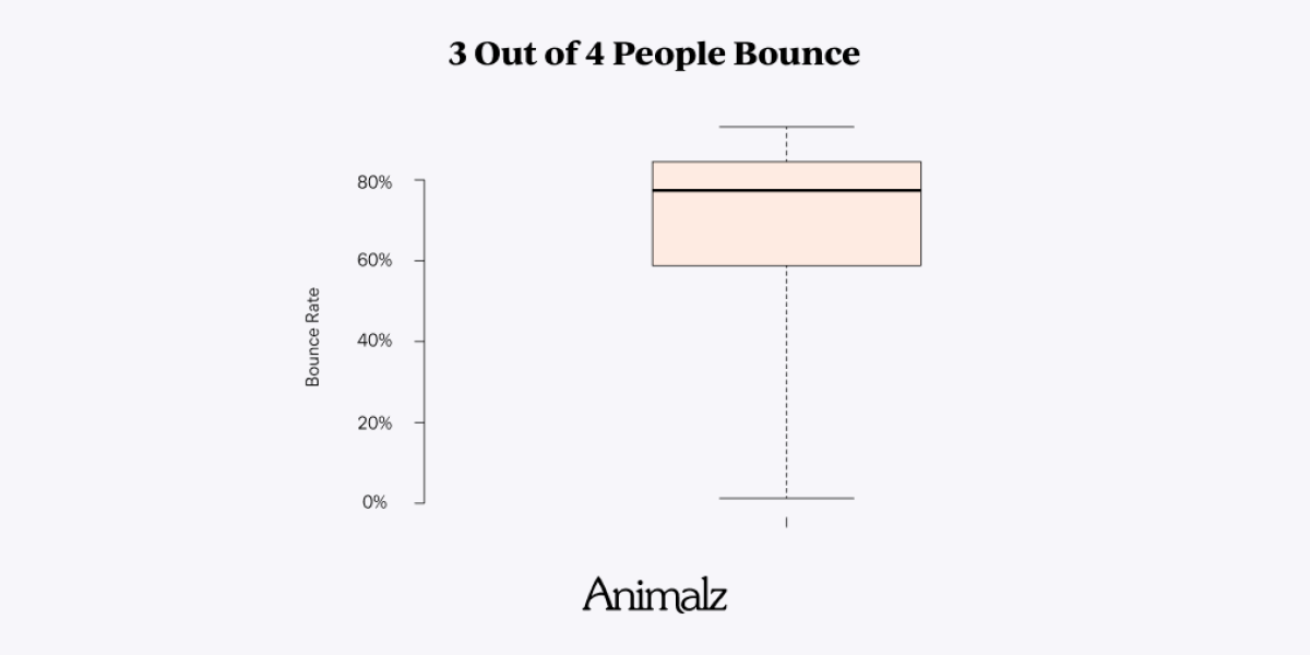 Once we’ve done the hard work of attracting a website visitor, how many stick around? Across our dataset, the median bounce rate was 74.8%, slightly down from last year (80.33%). Instead of four out of five people bouncing, it’s now just three out of four.