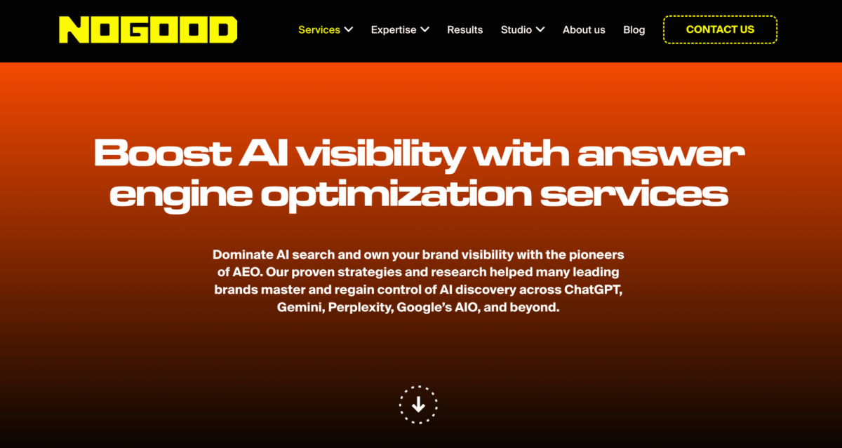 NoGood is a growth marketing agency that weaves AEO into its full-service offering alongside SEO, content marketing, and paid media.