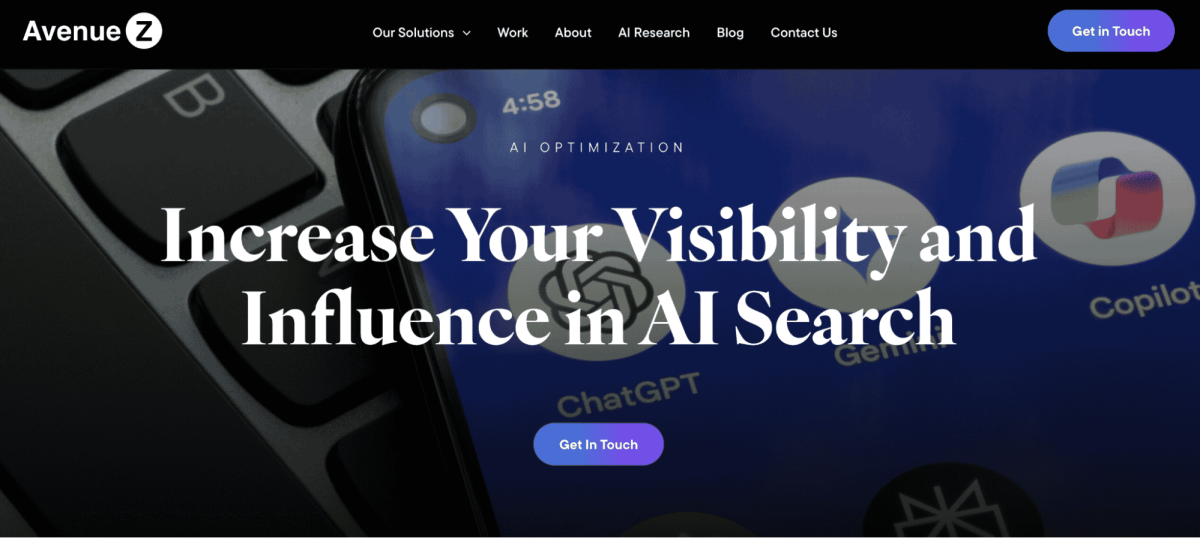 Avenue Z works across industries with a focus on fintech, emerging technology, B2B SaaS, venture capital, and healthtech. They've helped brands like Acorns, Better, and Dave establish visibility in AI search results through campaigns that combine traditional PR with GEO tactics.