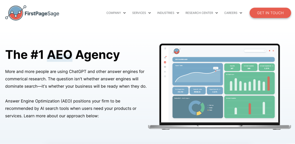 First Page Sage is a digital marketing agency that combines traditional SEO and reputation management with GEO.