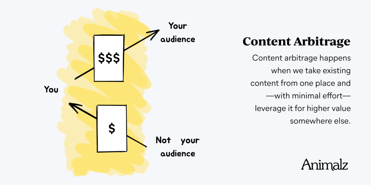 Content arbitrage happens when we take this existing content from one place and—with minimal effort—leverage it for higher value somewhere else.