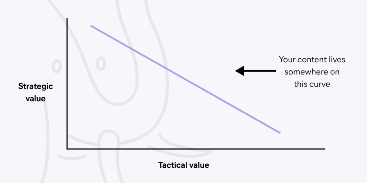 Different types of content can be mapped closely to this value curve, depending on the quantity of strategic or tactical value they offer. But before looking at examples, let’s dig into those strategic versus tactical value axes for a moment.