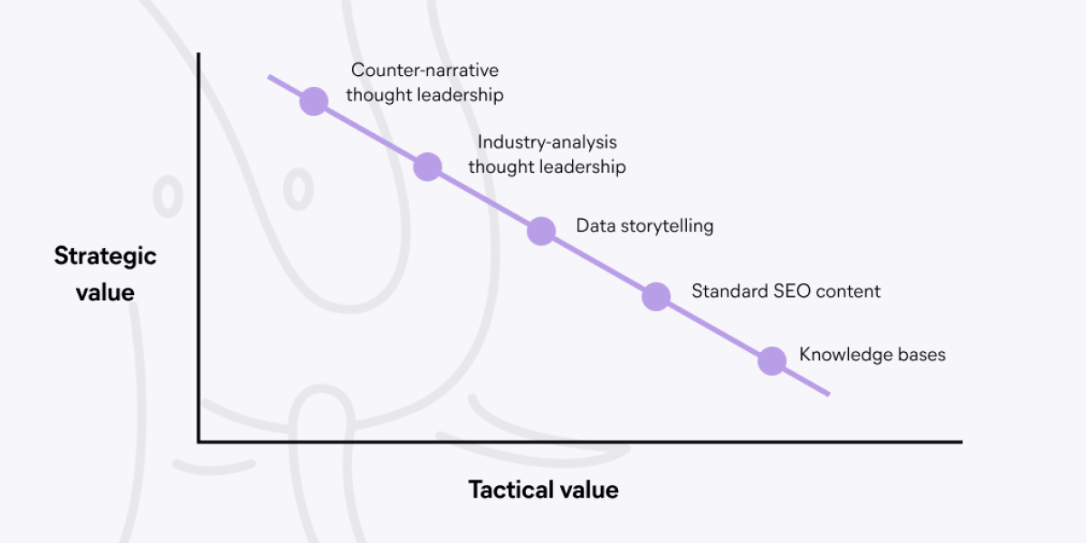 Counter-narrative thought leadership and knowledge bases bookend the rest of the standard content lanes used by content marketers, which fall somewhere between these two on the value curve.