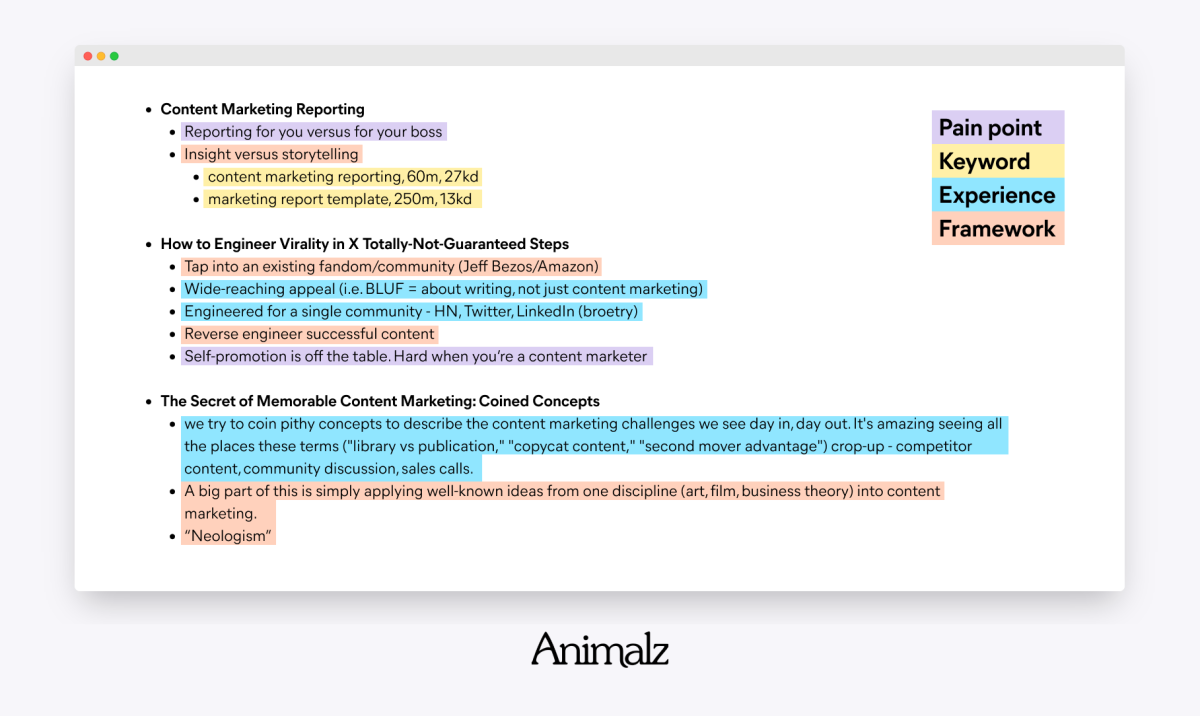 At Animalz, we use a principle called BLUF to add immediate value to everything we write: Bottom Line Up Front. Introductions and paragraphs open with the most important details first: the key takeaways, the important data, the story’s punchline. The reader gets value, and they read on for additional context—not because of a cheap bait-and-switch.