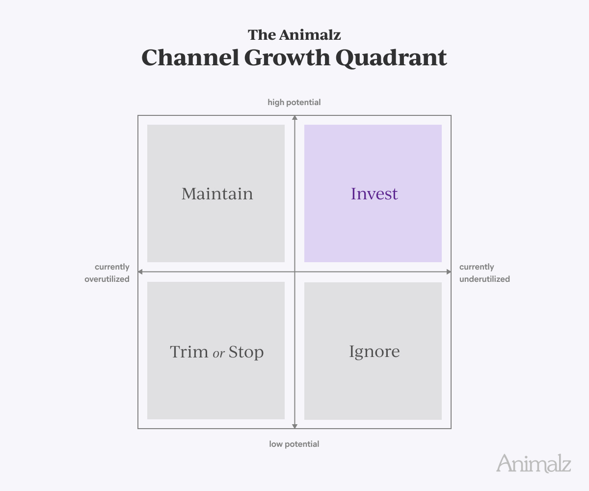 By reviewing your channels this way and placing them on the Channel Growth Quadrant, you create a clear picture of what to do with each one.