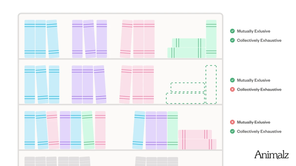 How it works: With MECE, your content meets two requirements: it’s collectively exhaustive (covers the full scope) and mutually exclusive (no overlapping sections).