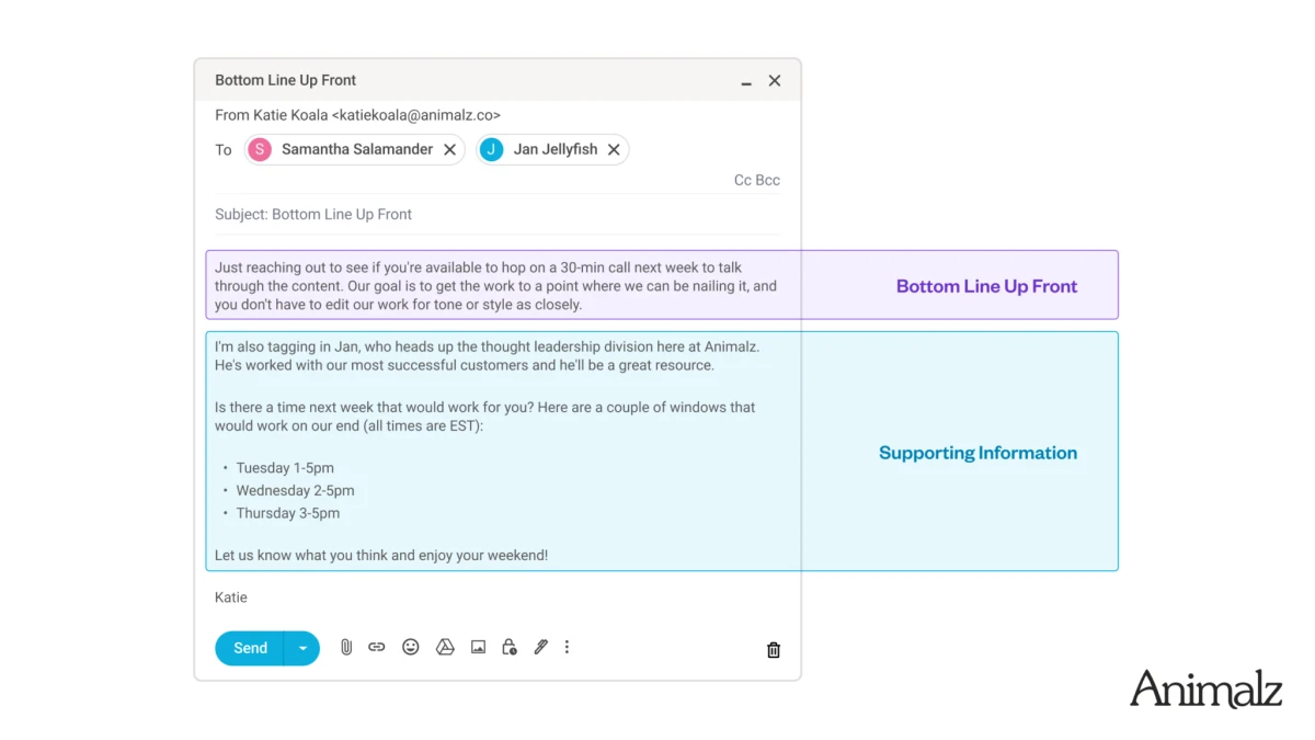 BLUF works across all content types — blog posts, emails, and internal communications.