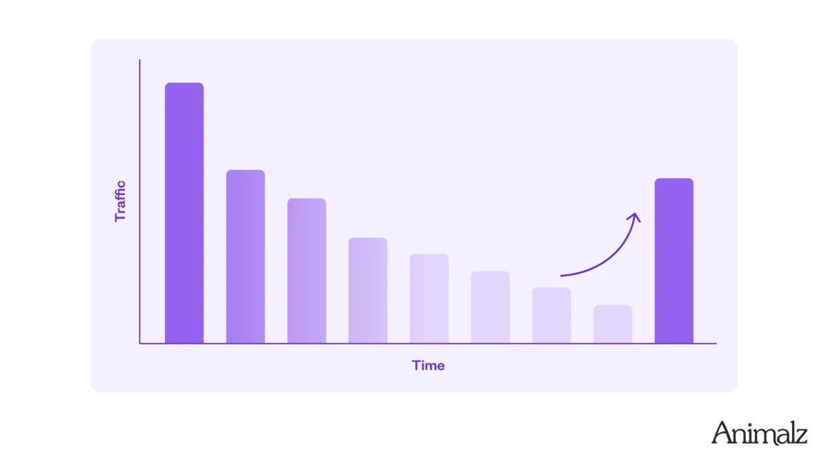 What it is: Content decay and refresh is an approach that identifies articles losing organic traffic over time and updates them to regain rankings and visitors.