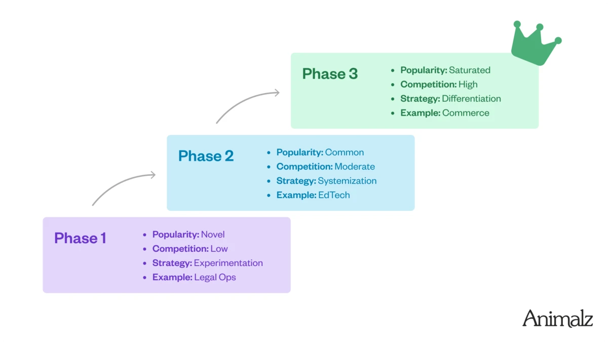 What it is: The Content Maturity Model is a framework that maps content strategy to your industry’s competitive landscape. It breaks content marketing into three stages — experimentation, systematization, and differentiation — based on how much competition you face.