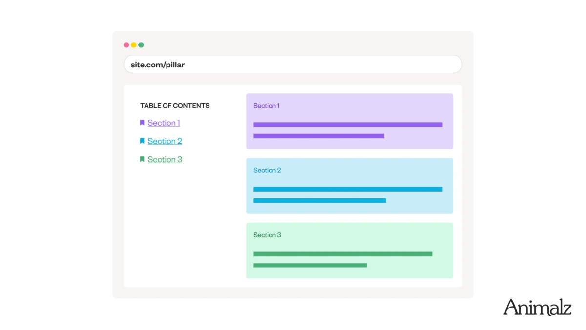 Pillar content conveys authority, and often attracts more backlinks and outperforms shorter content in conversions. And they’re best served with a table of contents that helps readers navigate the comprehensive coverage.