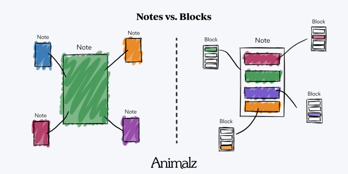 A recent innovation explosion in note-taking tools led by applications like Notion and Roam Research breaks notes further down into individual blocks.