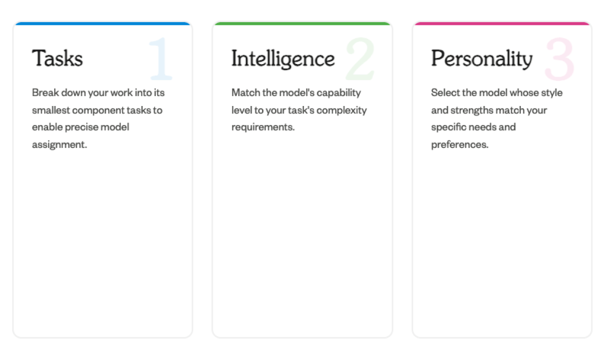 If you want to distribute guidance around model usage through your team or organization, you can track model behavior with reference sheets or baseball style cards that capture each model's personality.
