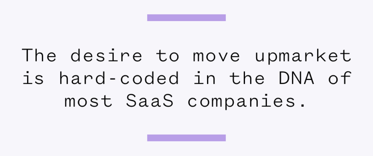 The desire to move upmarket is hard-coded in the DNA of most SaaS companies. The pay-as-you-go model combined with the efficiency of software means that cost- and time-savings can eat away at all kinds of other businesses. It’s only natural that these companies want to inch their way towards the bigger pockets of enterprise companies.