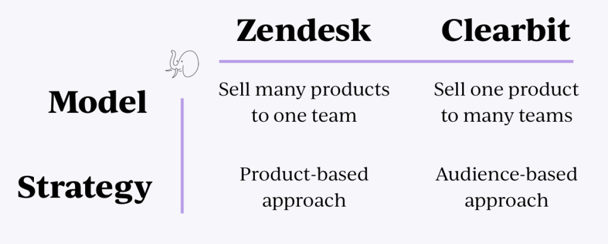 In each case, the content team needs to recognize all of the ways that people will search for use cases that one of the products solves for, and then build content for it. There are two ways to do this, and to understand them, we need to look at the difference between Zendesk’s and Clearbit’s business models.
