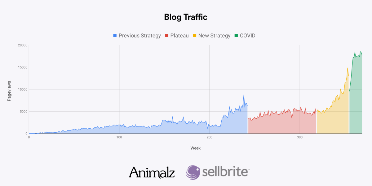 Instead, Sellbrite had effectively invested in their own success: their articles about multichannel ecommerce created a surge in traffic that fed directly into the product.As a result, Sellbrite’s blog saw its best-ever traffic during the height of COVID-19, hitting 18,000 visits in a single week: