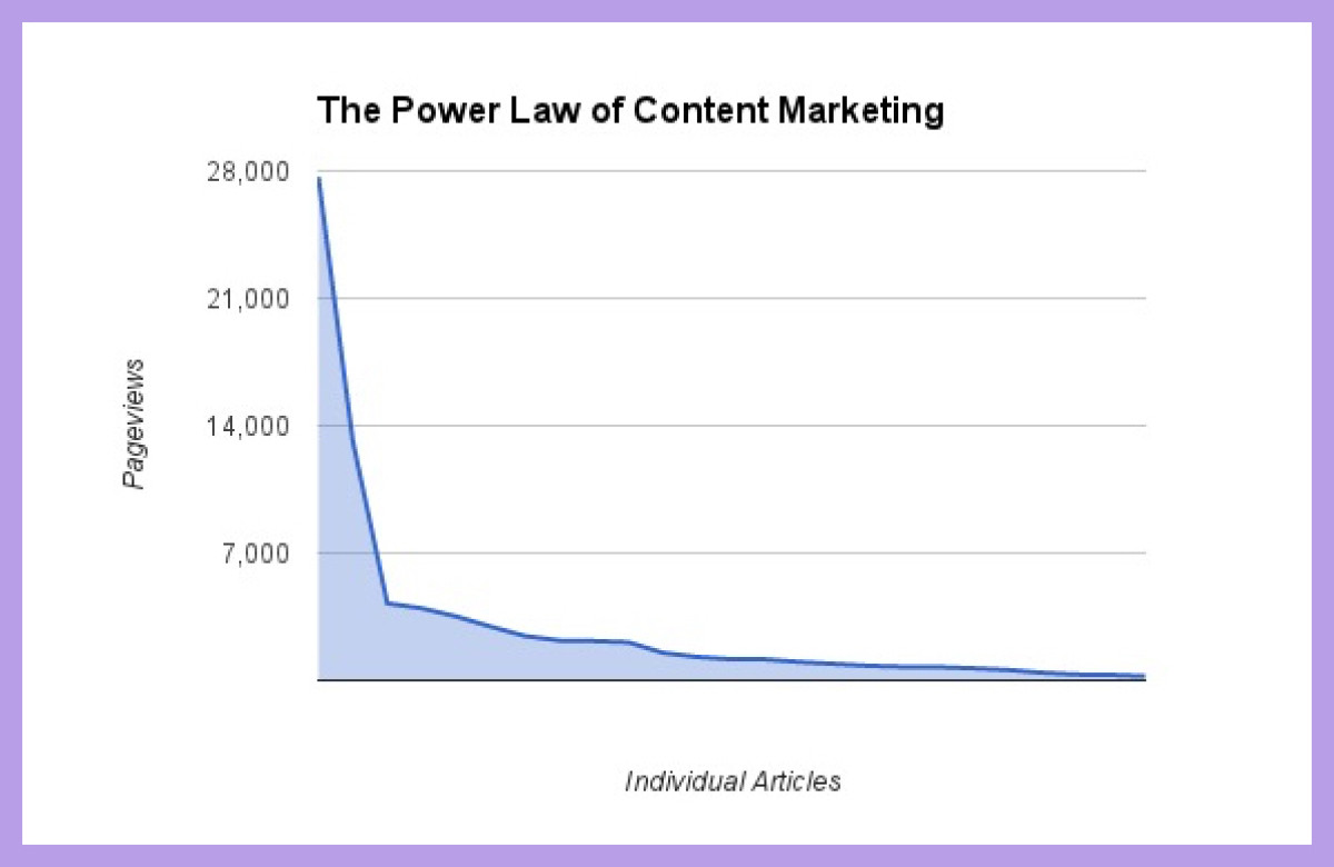 Most blogs are subject to the power law of content marketing, which is similar to the 80-20 rule. It states that the bulk of the traffic comes from a few posts, while most posts get very little traffic.