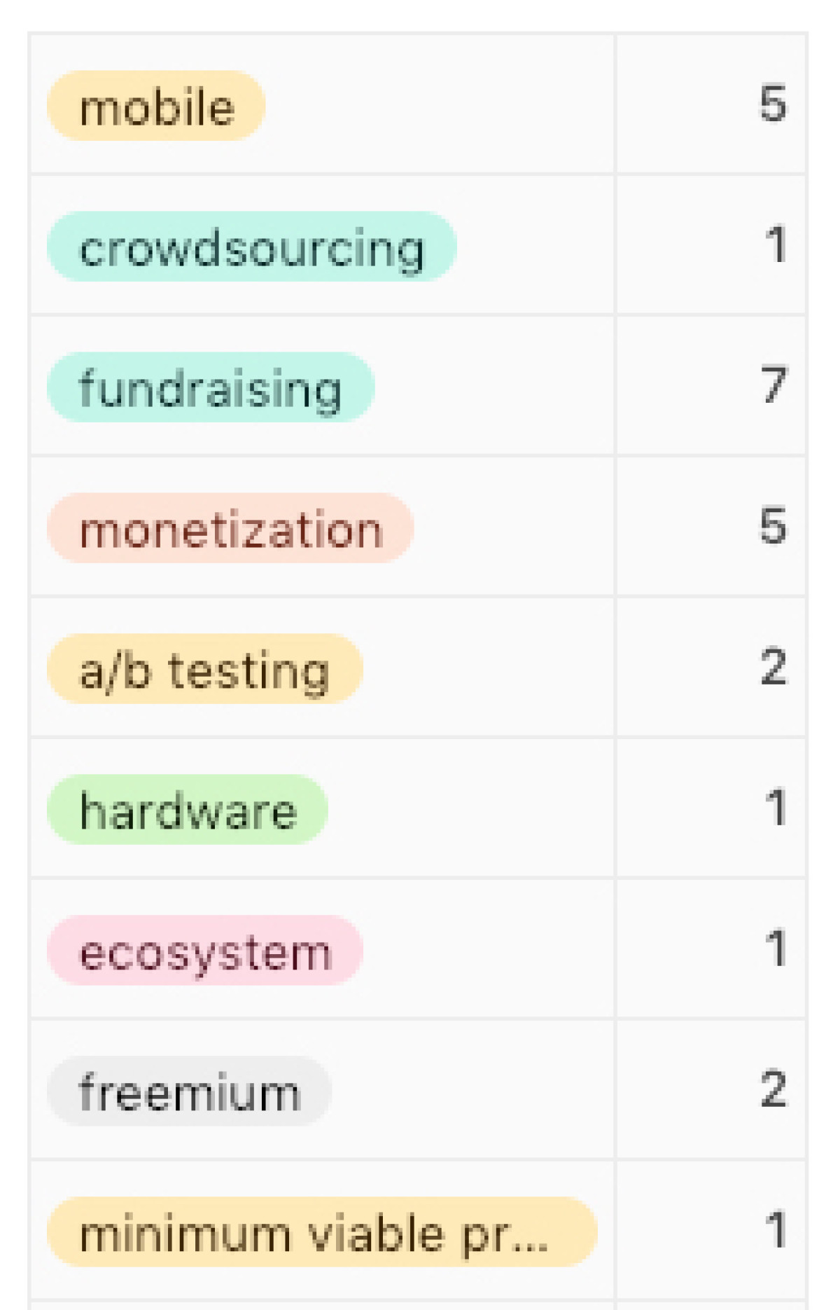 Once you’ve added and tagged all the posts, you can use a simple pivot table to count the number of times each topic comes up. From here, put your content marketing hat on. Figure out why “mobile” and “fundraising” keep coming up, then write a post that informs an interested reader on the topics.