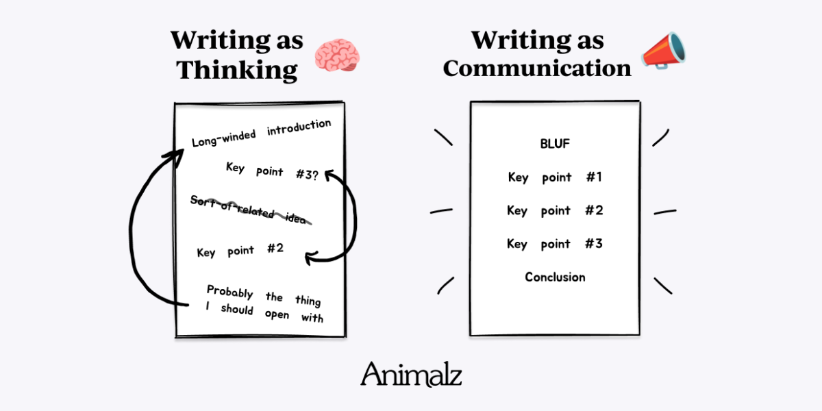 But there is a crucial distinction to be drawn between writing as a tool for thinking and writing as a tool for communication. One is writer-centric, exploratory, and optimized for understanding; the other is reader-centric, cohesive, and optimized for persuasion. The type of writing that best helps you, the author, is different from the type of writing that best helps the reader.