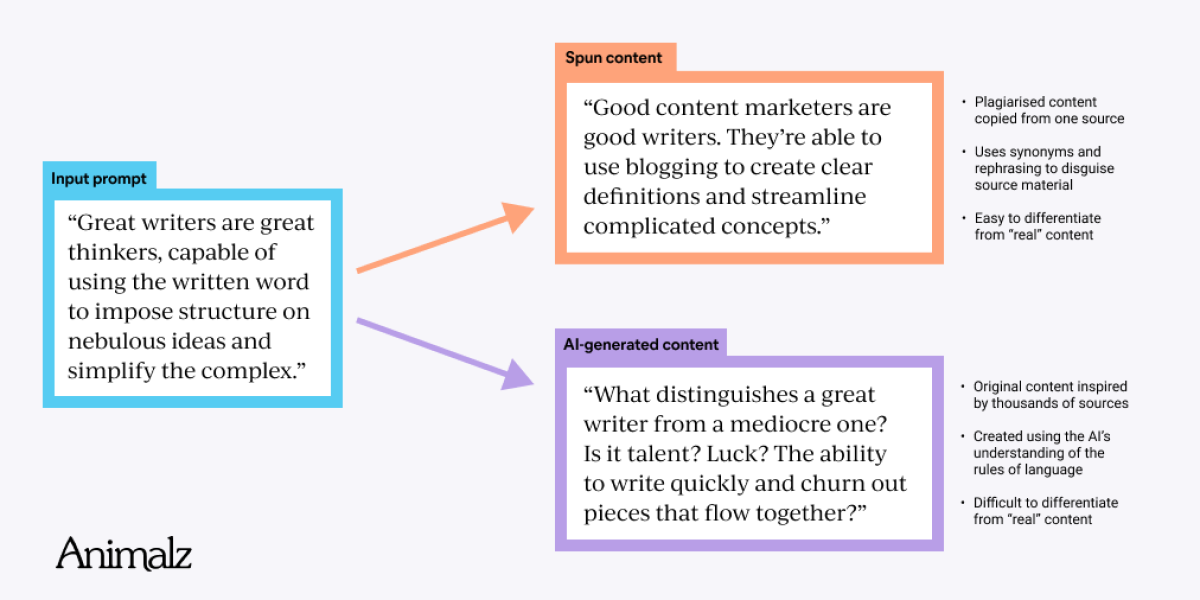 It’s also important to avoid conflating AI-written content with older types of “spun” content: lightly reworked versions of existing content. Spun content often falls foul of plagiarism detectors, and Google is good at detecting many forms of spun content (it’s been working at it since 2012).